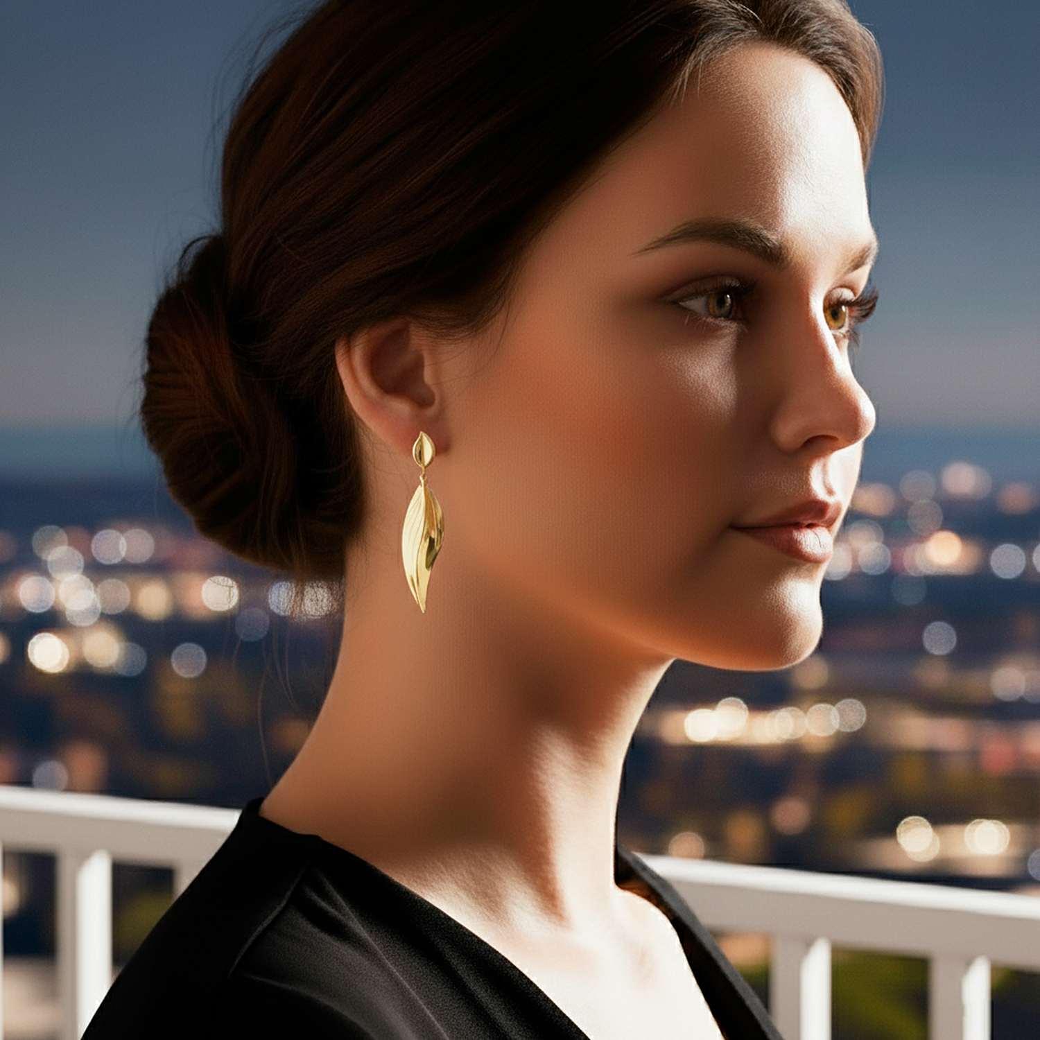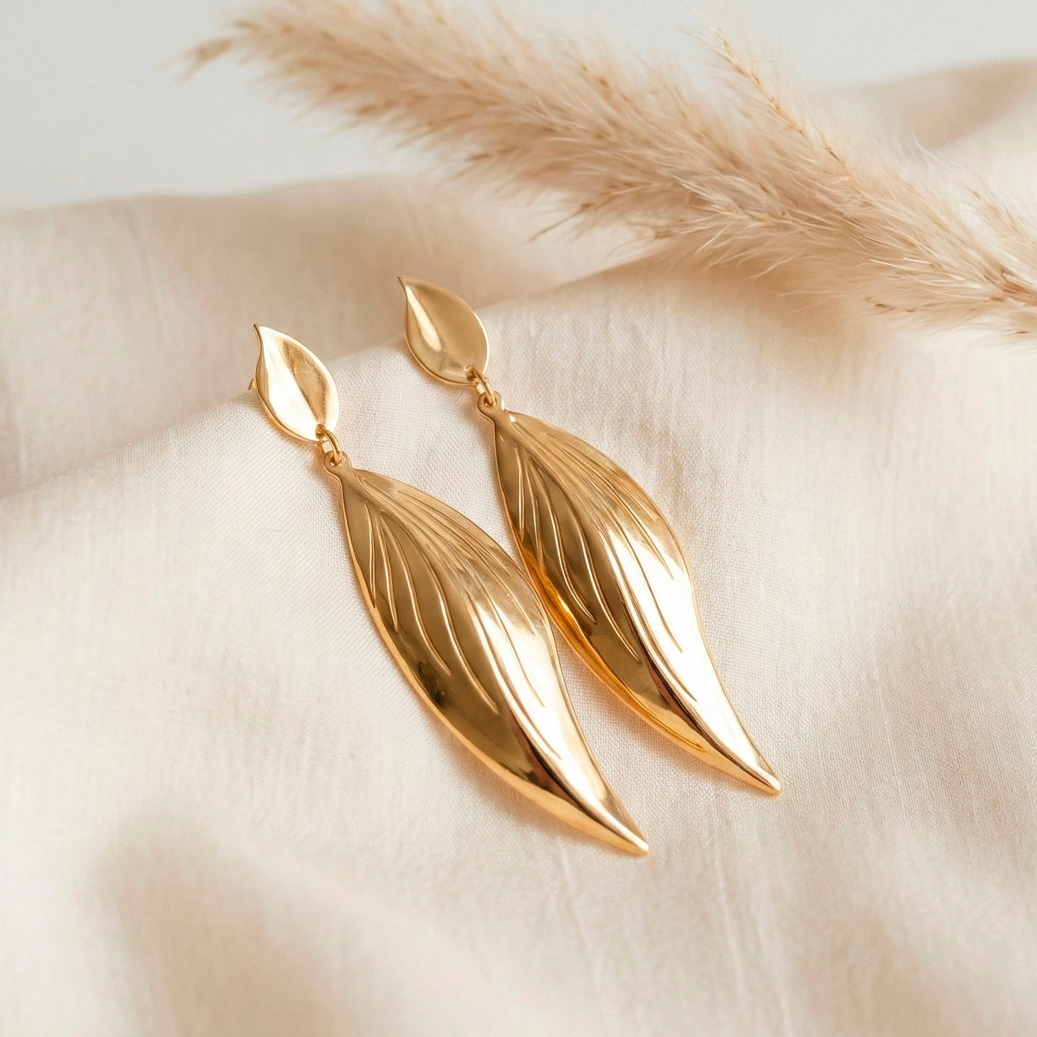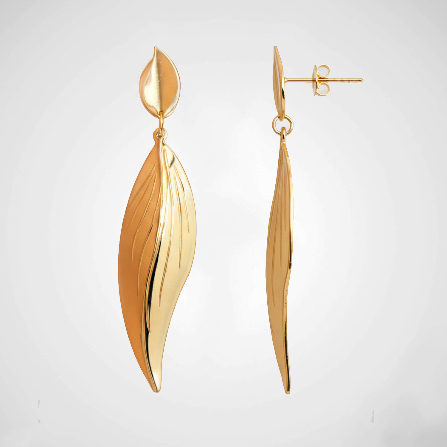 Aretes enchapados en oro de 18K con piedra granate central y cristales brillantes. Diseño colgante articulado de estilo imperial que combina elegancia, geometría y movimiento.
