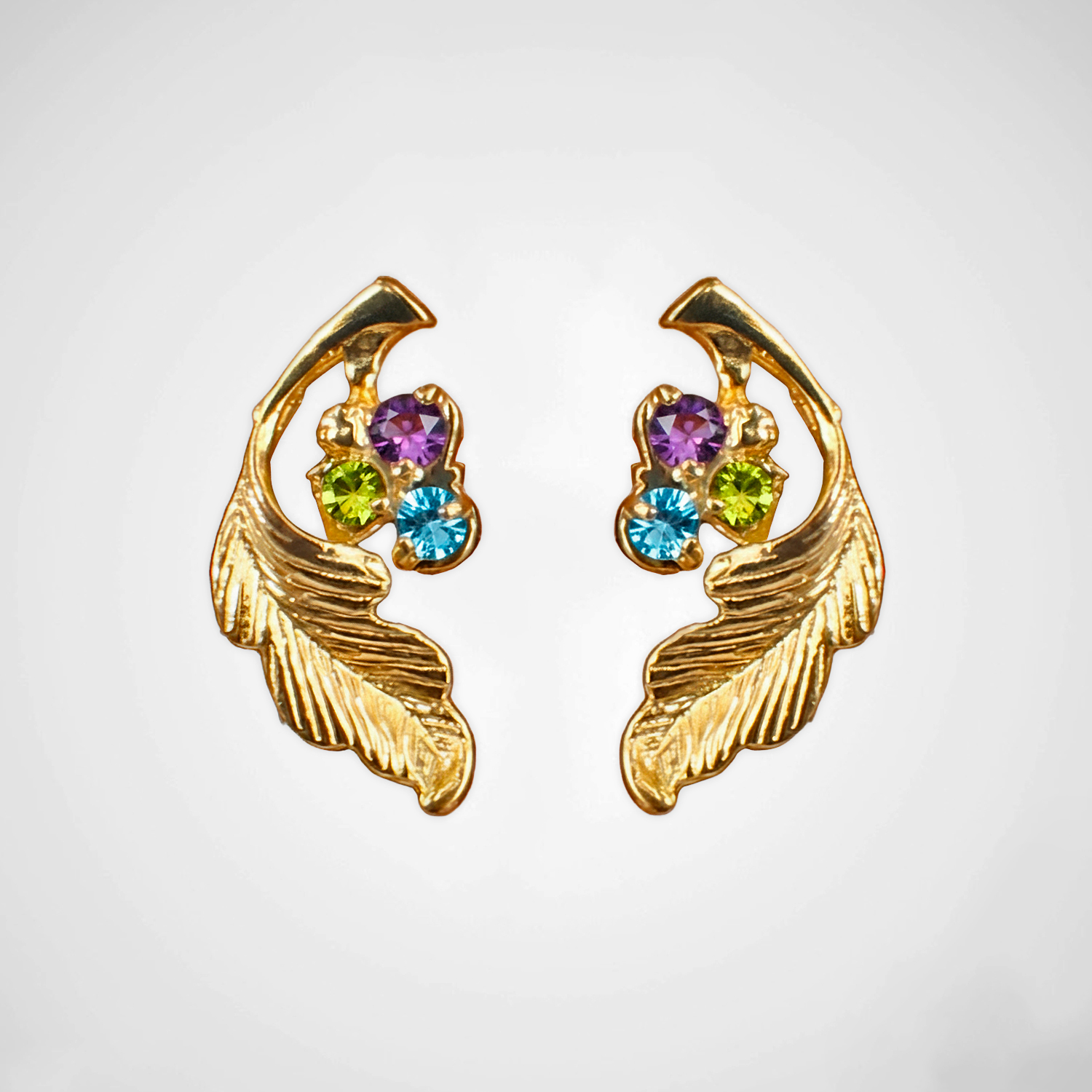 Aretes enchapados en oro de 18K con piedra granate central y cristales brillantes. Diseño colgante articulado de estilo imperial que combina elegancia, geometría y movimiento.